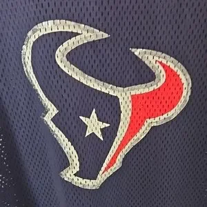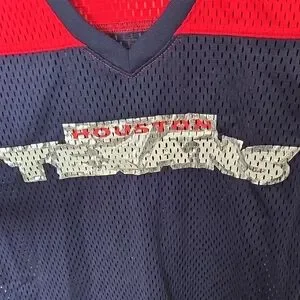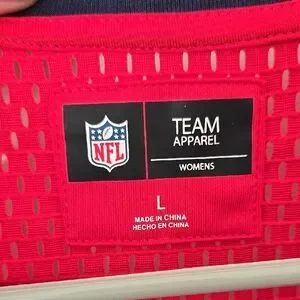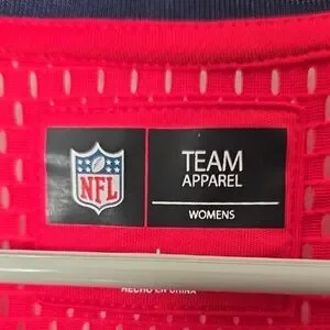 Stylish Texans jersey for women. Features red and blue mesh design. Official NFL branding.