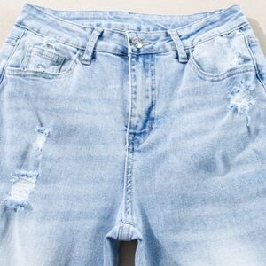 Experience vintage style with our distressed jeans in a light wash. These 90s inspired jeans will add a touch of nostalgia to your wardrobe. This flare silhouette is great for flattering your figure.