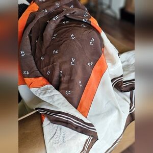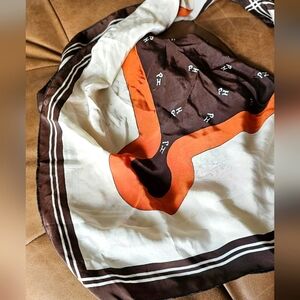 Hermès-like vintage silk scarf featuring a brown and orange pattern and the letters HP (like Hermès Paris).