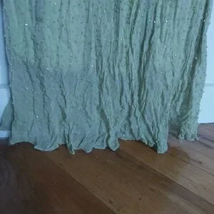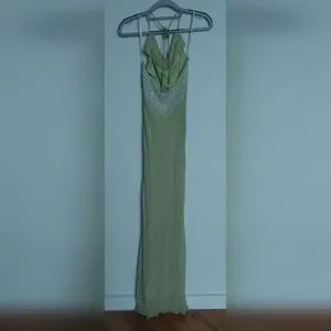 Sue Wong Beaded Celery Color Evening Gown 100% Silk Size 2 w/ Sill Scarf