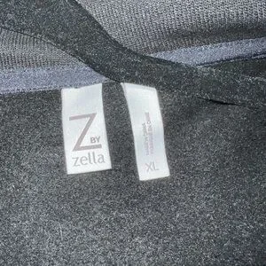 Comfortable and stylish by Z by Zella. Perfect for workouts or casual wear. Hi/Lo asymmetrical hem. Thumb peep holes on cuffs. Snack closure at shoulders. Sailor collar. Work from home full time … purging closets.