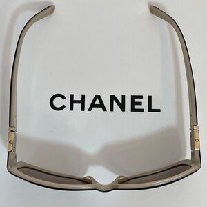 Vintage Rare Anne Klein Sunglasses in two toned dark brown almost black and beige frame. Glasses featuring side square metal logo hardware in silver.