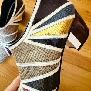 Hard to part with these incredible ankle boots by designers Rodarte. Croc patchwork multi color in size 39. Excellent condition!!