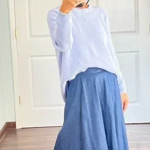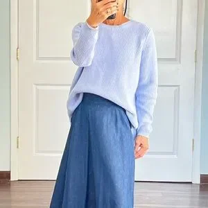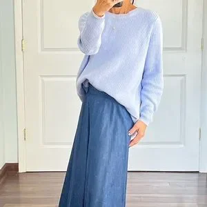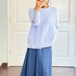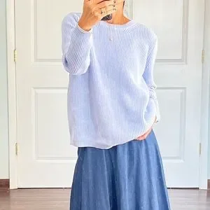 Oversized, raglan sleeves, crewneck. Side slits, slightly hi-low.