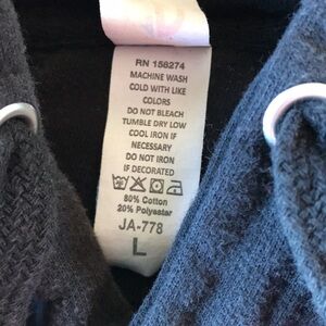 Just Apparel Co. black hoodie, size L. Good preowned condition. Drawstring hood. Kangaroo pocket.