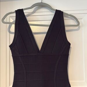 This elegant black bandage dress is perfect for a special occasion. Its sleek design offers a flattering fit, making it a must-have in your wardrobe. Worn once, in excellent condition