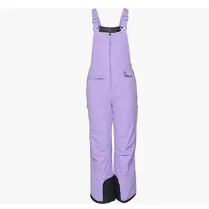 Snow bib overalls in Lilac by Arctix. Perfect for winter activities. Features adjustable straps and zip closure.
