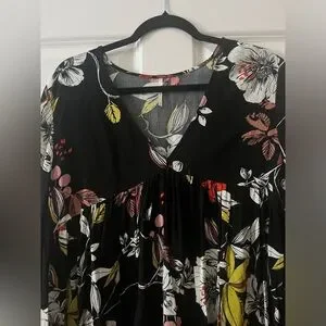 In great condition. Pullover V-neck Long set-in bell sleeves Floral pattern Imported Woven Cotton, polyester