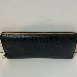 This wallet has been well loved but has lots of life left. The leather is overall in good condition, very minor signs of wear and marks; however the gold tone hardware does have wear see pics. It is missing the removable wristlet strap.