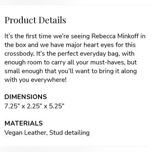Elevate your style with the Rebecca Minkoff Quilted Studded Crossbody Bag. This chic black bag features a quilted design with studded accents, perfect for any occasion.