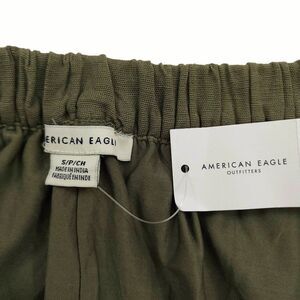 American Eagle Crop Wide Leg Pants Womens Small Green Pull-On Linen Blend