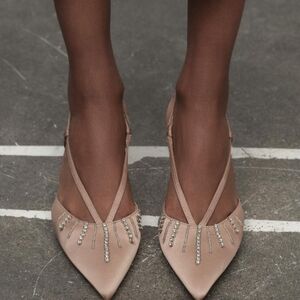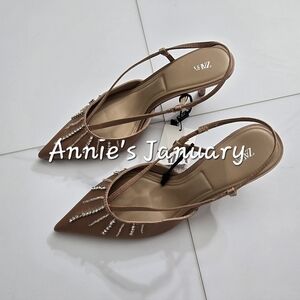 ZARA Women's Rhinestone Sandals(Beige, US 8, 10/EUR 39, 41)