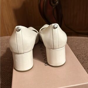 Donald Pliner size 8 1/2 block heel shoes excellent like new condition. Only wore a few times. Pearl color. heel is a little over 2 inches.