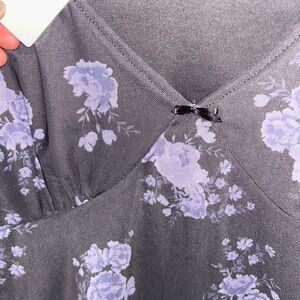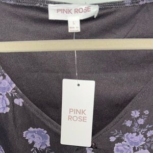 Imagine a delicate, feminine shirt with a soft lace overlay, giving it an elegant and slightly vintage feel. The fabric is adorned with beautiful purple flowers, adding a touch of charm and vibrancy. A dainty bow sits perfectly as a decorative accent, enhancing its cute and stylish appeal. The shirt is brand new with tags, ensuring its pristine condition and ready-to-wear freshness.