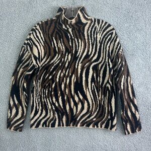 Elliott Lauren Sweater XS Call Of The Wild Mock Neck Jacquard Zebra Wool Blend