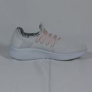 Skechers Slip On White Sneaker with Pink Ribbon Lace Size 9