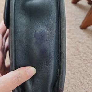 Comes with partial hangtag, ink spot and no strap, some wear/color loss on piping