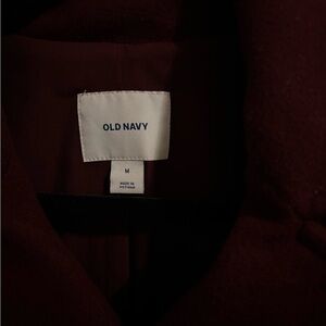 Stylish double-breasted peacoat. Features classic button design. Perfect for chilly days.