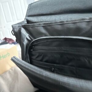 Excellent condition. No major scuffs. 6 exterior pockets with zippers, credit card sleeves and other internal pockets. No rips, tears or stains in lining.