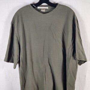 Perry Ellis Green Khaki Ribbed Cotton Rayon Short Sleeve Crew Neck Shirt Size XL