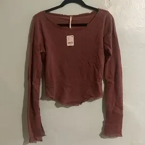 Brown Free People long sleeve top. Fishnet style material that is fully lined with a super soft mesh.