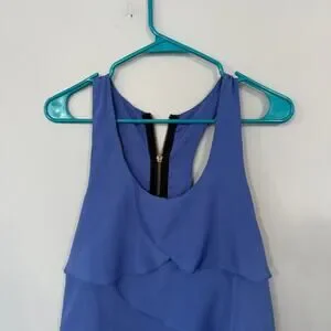 Lush Periwinkle Blue Mini Dress w/ Ruffle Tiers in women's Size Medium. 100% polyester. Dress is in very good used condition with no flaws or stains other than some minor wash wear. Please see close-up pictures for condition details. Cocktail. Girls night out. Girls day. Date night. Party. Dance. Pit to pit measures approx 17 in across, waist approx 17.5 in across, hips approx 19 in across, length from top of front shoulder to bottom hem measures approx 33.5 in.