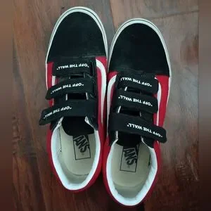 Stylish and comfortable Vans sneakers for kids. Featuring a bold black and red design, these shoes are perfect for everyday wear.