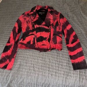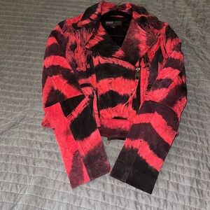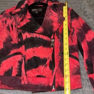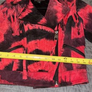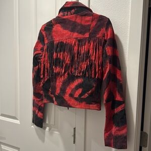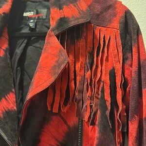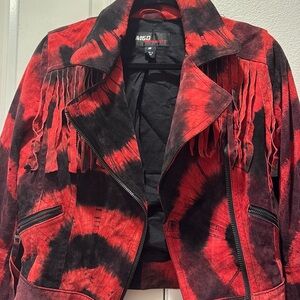 Suede leather jacket with tassels zipper front and pockets like new condition