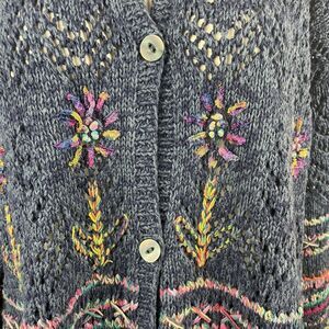 Vintage Express Tricot Hand Knit Multi Color Floral Design Size Large Cardigan