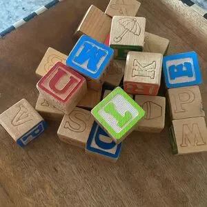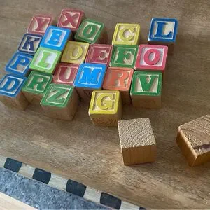 Vintage wooden kids blocks nursery decor. You will be getting all the blocks listed in the photos, so please look at all the photos. Feel free to ask questions. These are so cute in a mason jar for decor or used in crafts… the possibilities are endless! Smoke Free home.