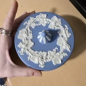 Wedgwood Blue Jasperware Large Round Trinket Box With Lid