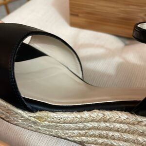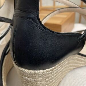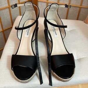 L.K. Bennett Black Leather Nellie Peep Toe Espadrille Wedge Heel EU 37.5 /US 7