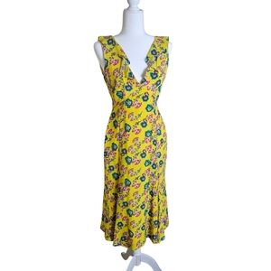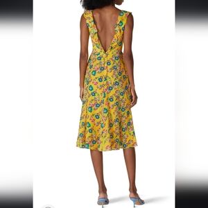 Silky with a sexy low back, this feminine SALONI dress is finished with a frill-detailed V-neckline in excellent condition.