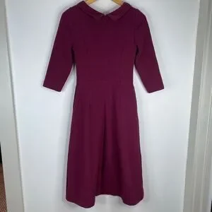 Boden Violet Ottoman Dress 2 Ruby Red Ribbed Midi Collar Classic Preppy Twee