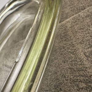 This is in used condition. It has a chip out of the inner lip. It also has some rainbow coloration in a few spots. Please look at pictures for accurate description. 1.5 stamped on one handle. 3055 on the other handle with 4 on the underside.