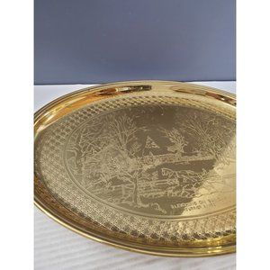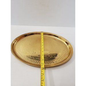 Vintage Brass oval Tray, Engraved Scene, Solid Brass, Catch-all Tray, Retro Brass Tray, oval,