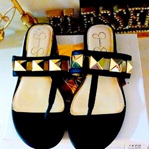 Step out in style with these chic black sandals featuring elegant gold accents. Perfect for any occasion. never worn!
