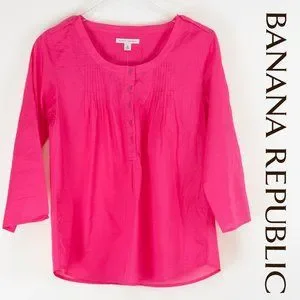 Banana Republic Shirt Cotton Blouse Quarter Sleeve Bright Pink Size Medium New