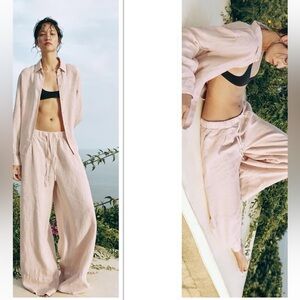 Zara 100% Linen Palazzo Pants Wide Leg Mid rise ZW Light Pastel Pink Size XS NWT