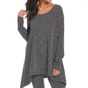 Elevate your wardrobe with this effortlessly stylish Bryn Walker polka dot tunic. Designed for comfort and sophistication, this medium-weight tunic features a classic black and white polka dot print, a flattering scoop neckline, and long sleeves for a versatile, season-spanning look. The asymmetrical hemline adds a unique, flowy silhouette, making it perfect for layering or wearing on its own. Pair this tunic with leggings, jeans, or wide-leg pants for an effortlessly chic and comfortable outfit. Shop now before it's gone!