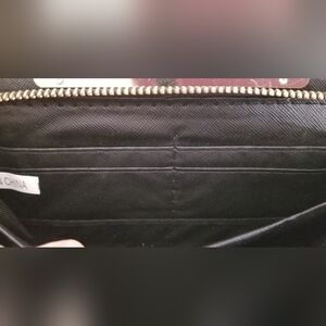 Clutch Wallet Black and Pink Floral Polka Dot Clutch with Chain Strap
