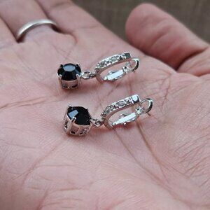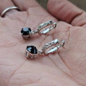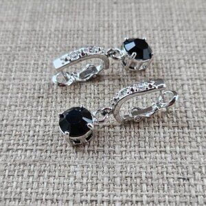 Women Earrings made with Swarovski Elements Black/Silver Tone Jewelry New