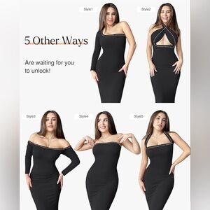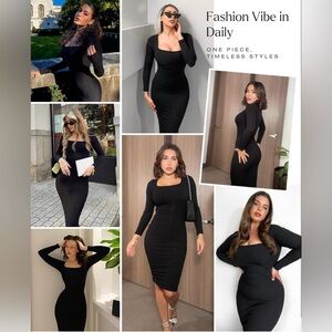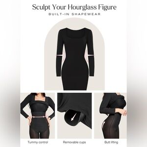 Popilush Long Sleeve Midi Dress Bodycon Shapewear Tummy Control Built-in Bra