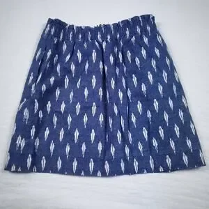 J.Crew Aztec Western Linen Blue Skirt Feather Design Pocket Paper Bag Waist 4