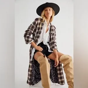 Free People Odessa Duster - Plaid/Cheetah