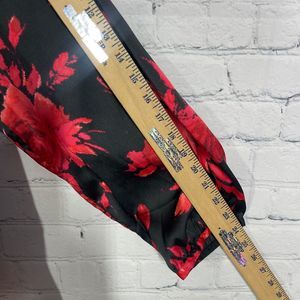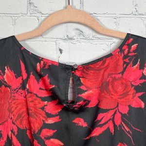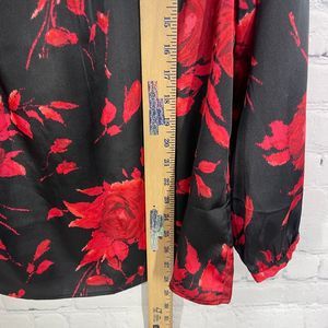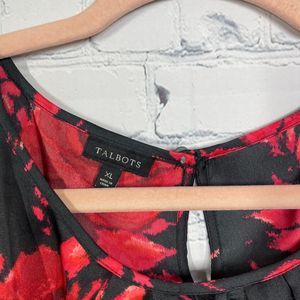 Talbots Blouse Womens XL Floral Pull Over Black Red Bishop Sleeve Career Top