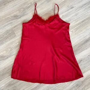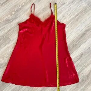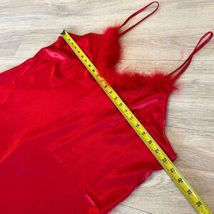 NWT Y2K Fashion Bug Red Silky Slip Dress Feather Trim Plus Sleepwear Lingerie