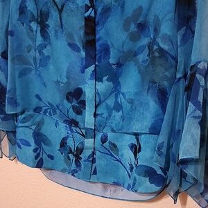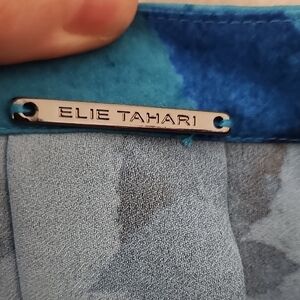 This Elie Tahari blouse features a rich blue hue with a relaxed, boxy silhouette. The mandarin collar and 3/4 sleeves add a touch of elegance, making it a versatile addition to any wardrobe. Its lightweight fabric ensures comfort and style for any occasion.