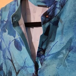 Elie Tahari Blue Blouse with Mandarin Collar and 3/4 Sleeves