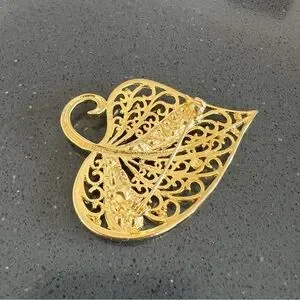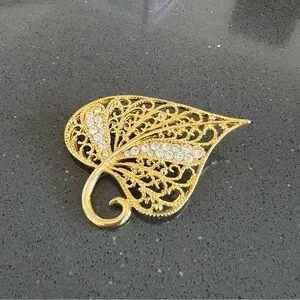 Vintage Gold Rhinestone Filagree Pin Brooch